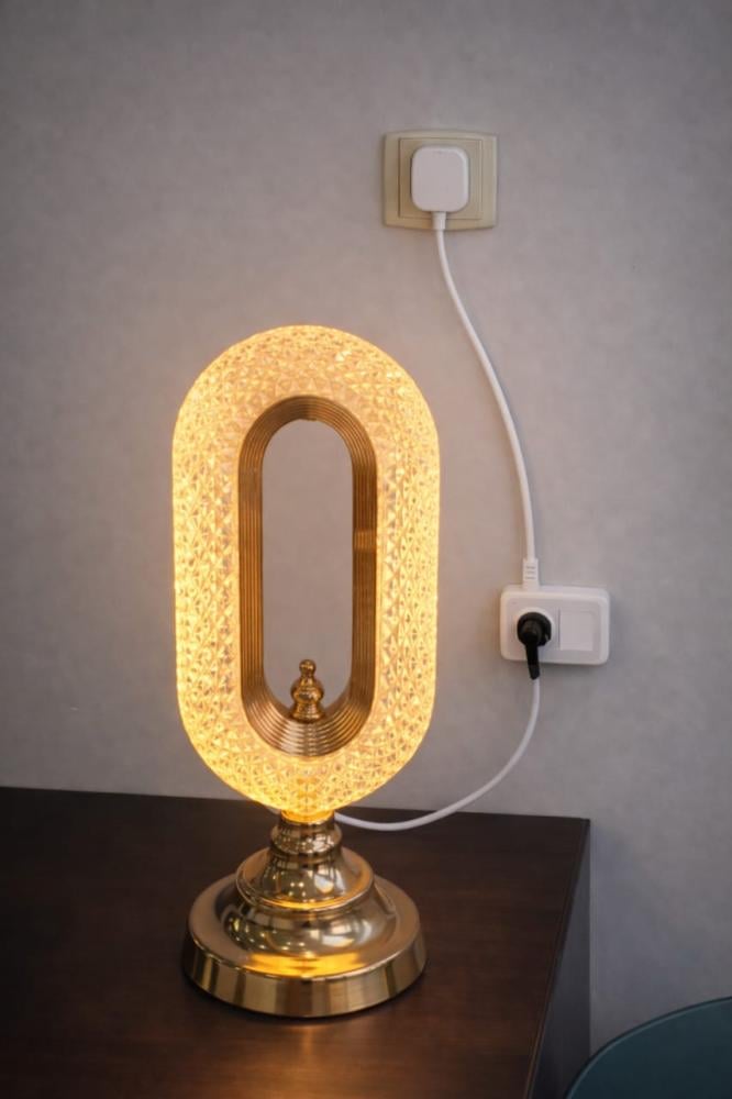 أبجورة طاولة كريستال بيضاوية بقاعدة ذهبية