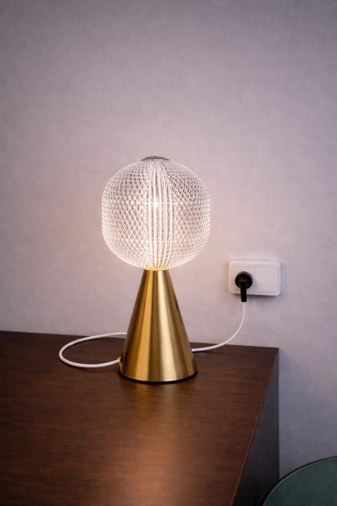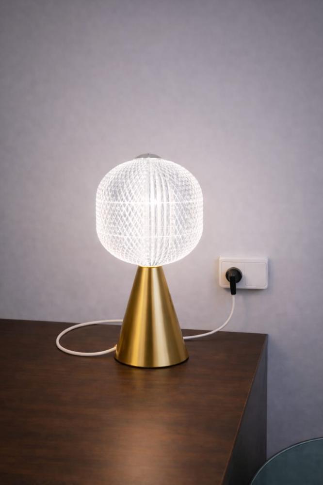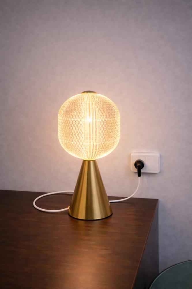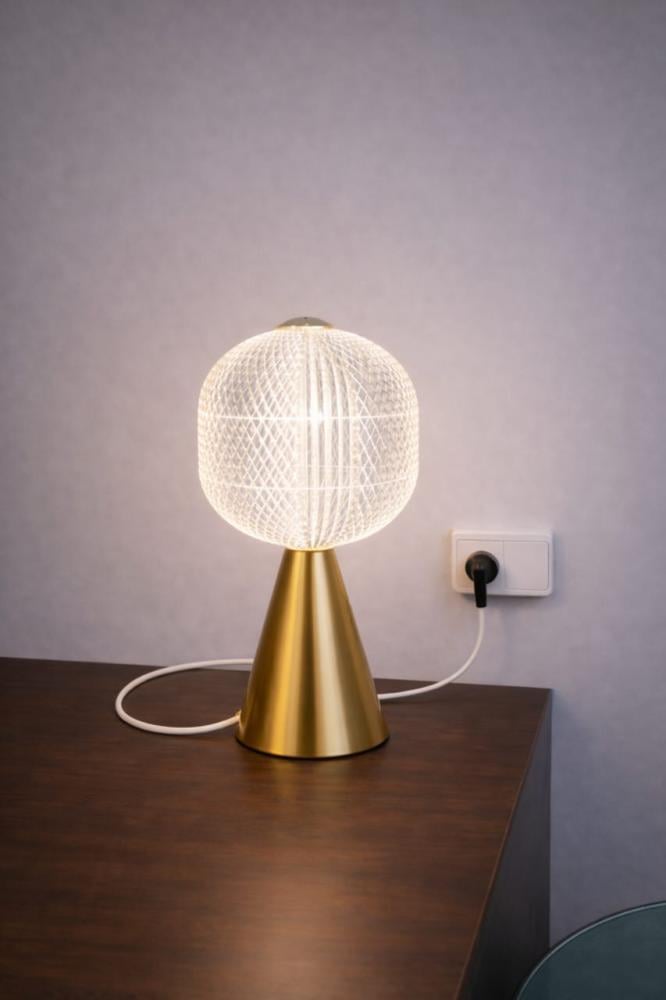 أبجورة طاولة كريستال فاخرة بقاعدة ذهبية – إضاءة أنيقة للمساحات الراقية