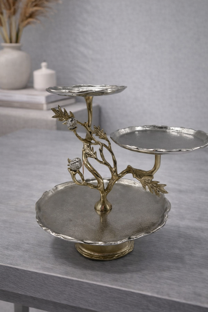 ستاند تقديم بتصميم نحتي مستوحى من الأغصان الطبيعية والتفاصيل الزخرفية الراقية، يمنح طاولتك حضورًا فخمًا يلفت الأنظار من اللحظة الأولى.