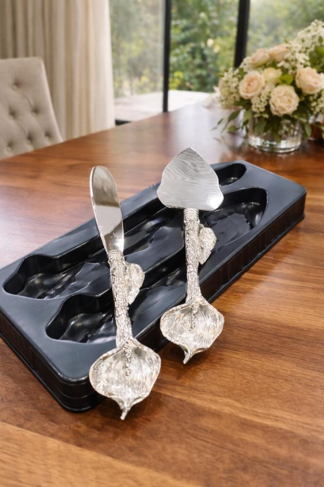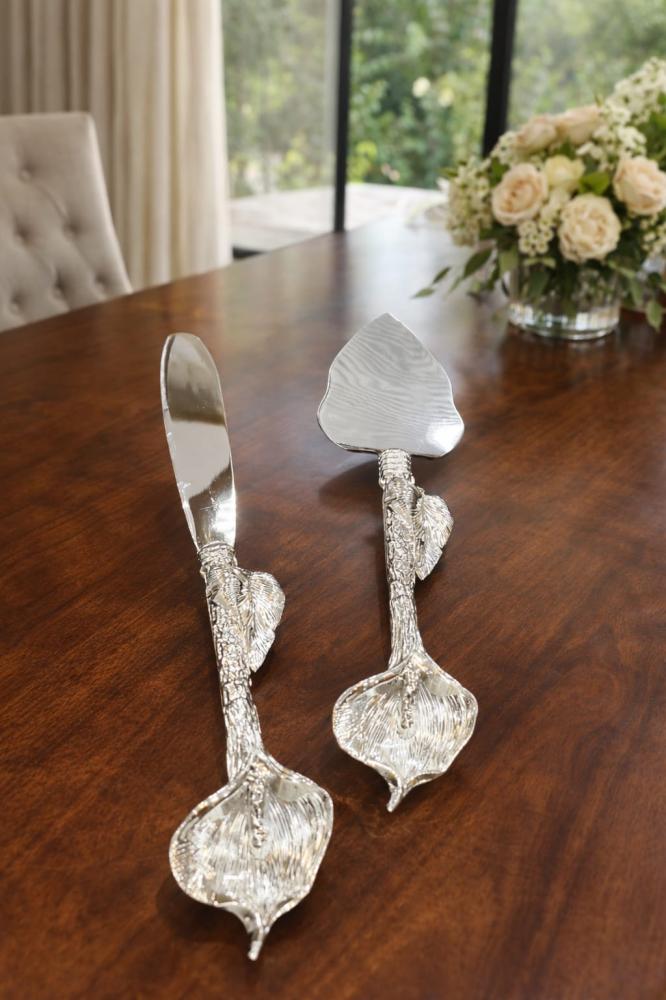 سكين وملعقة تقديم كيك بتصميم فني مستوحى من الطبيعة