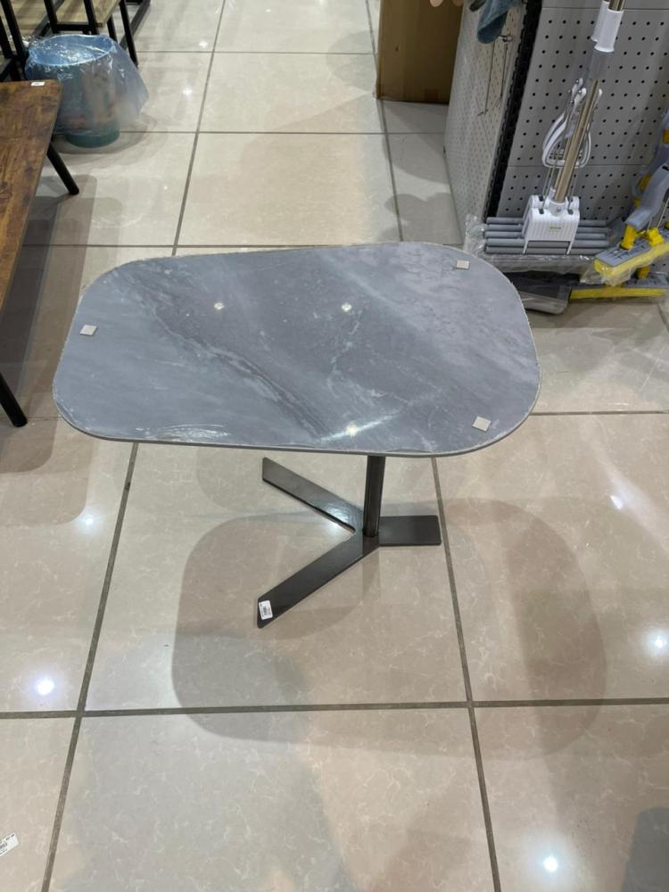 المقاسات: • الطول: 50 سم • العرض: 38 سم • الارتفاع: 52 سمطاولة خدمة جانبية بتصميم عصري يجمع بين السطح الرخامي الرمادي الأنيق والقاعدة المعدنية السوداء...