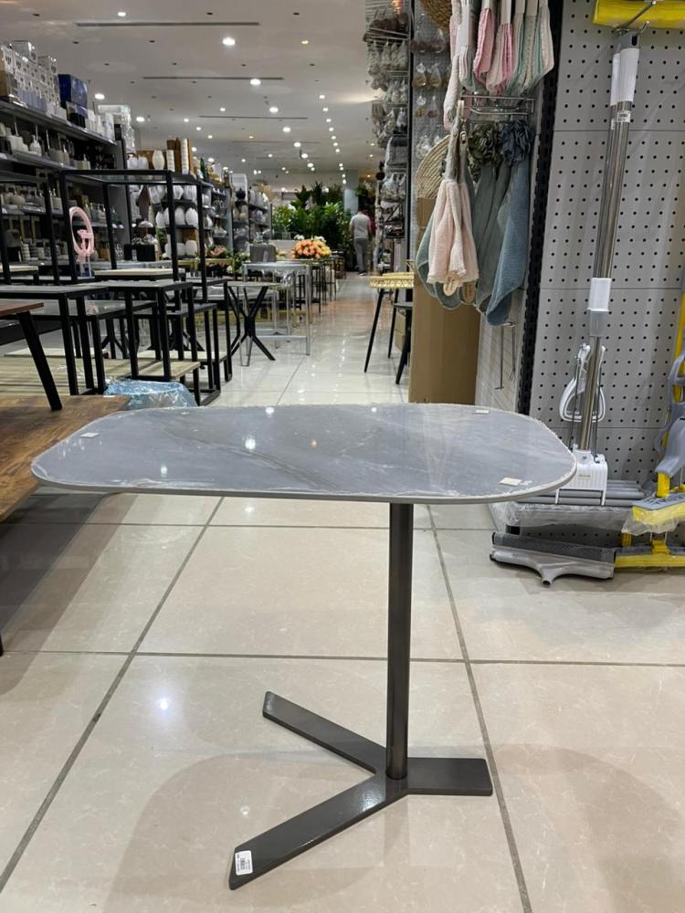 السطح الرخامي يعكس لمسة فخامة واضحة مع عروق طبيعية تضيف عمقًا بصريًا مميزًا، بينما توفر القاعدة المعدنية المتينة ثباتًا عاليًا وتوازنًا مثاليًا أثناء الاستخدام.