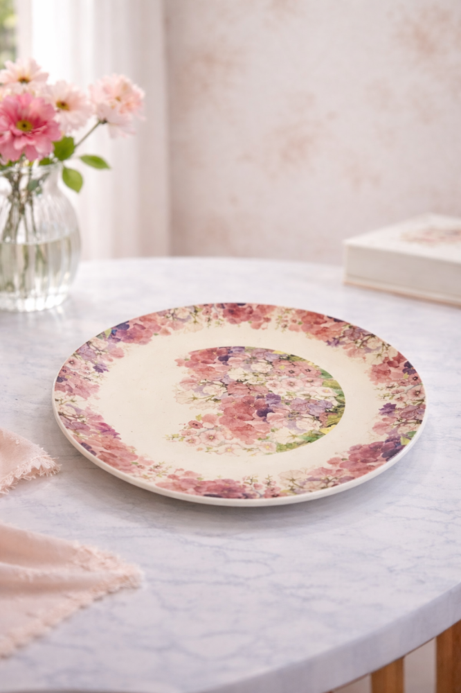 طبق تقديم دائري بورسلان بنقوش زهرية فاخرة