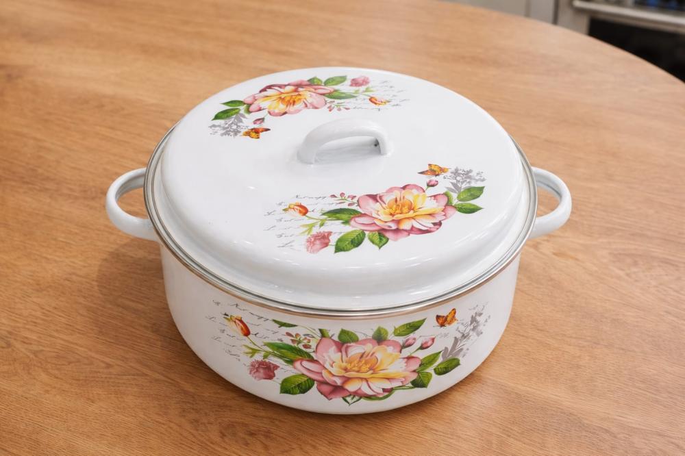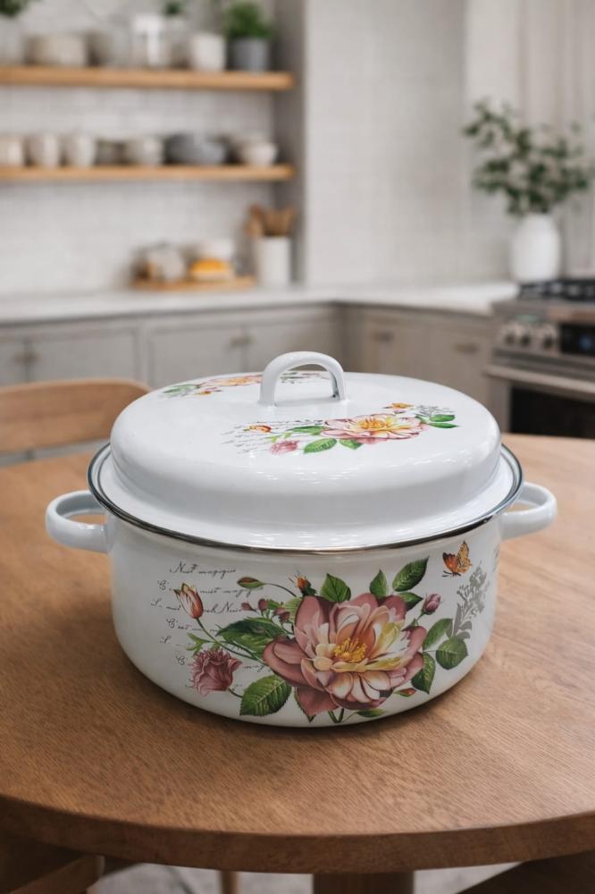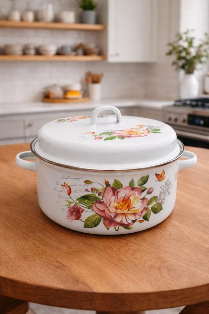 قدر طبخ مزخرف بنقوش وردية أنيقة