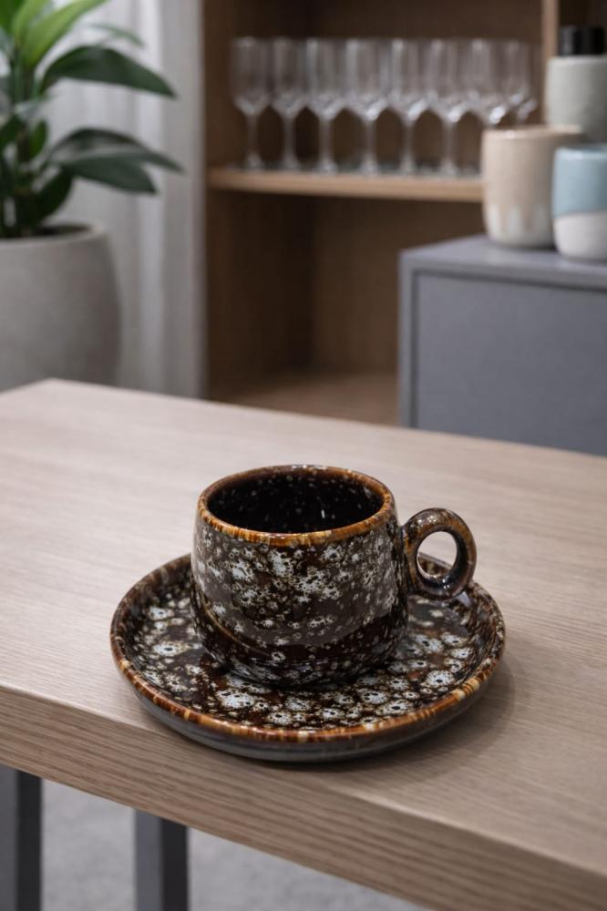 الوصف كوب إسبريسو سيراميك بتصميم رخامي داكن ولمسة لونية عميقة تعكس القوة والفخامة.تشطيبه الفريد يجعل كل قطعة مميزة، وهو مثالي لعشاق القهوة المركزة وتق...